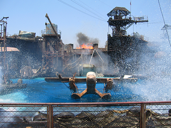アトラクション「ウォーターワールド」。映画はつまらなかったが、これは面白い。